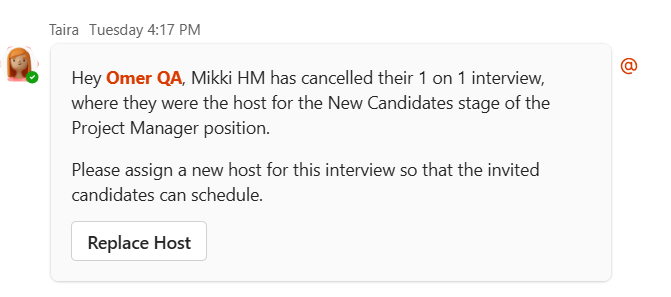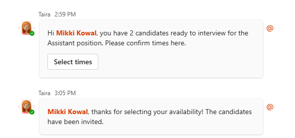 Here's how to interact with Taira as a Hiring Manager: