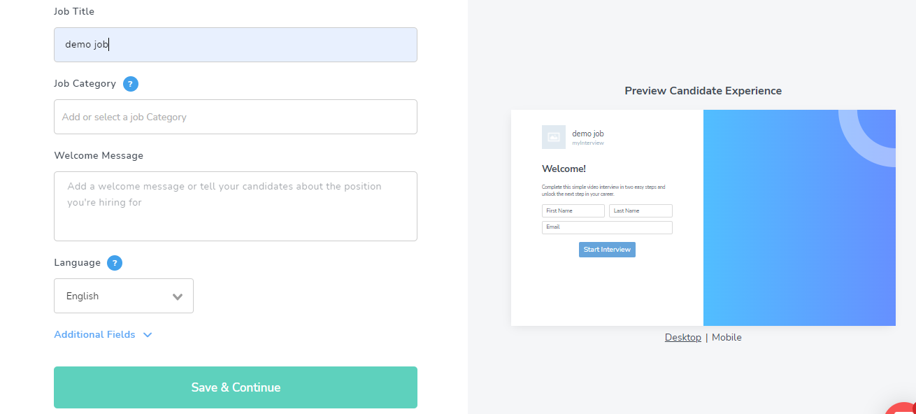 Setting up a new set of video interview questions, or what we refer to as a Job, is easy.