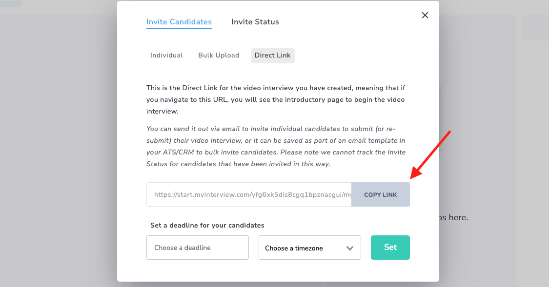 Copy the direct invite link for the job you would like to invite people to interview for: