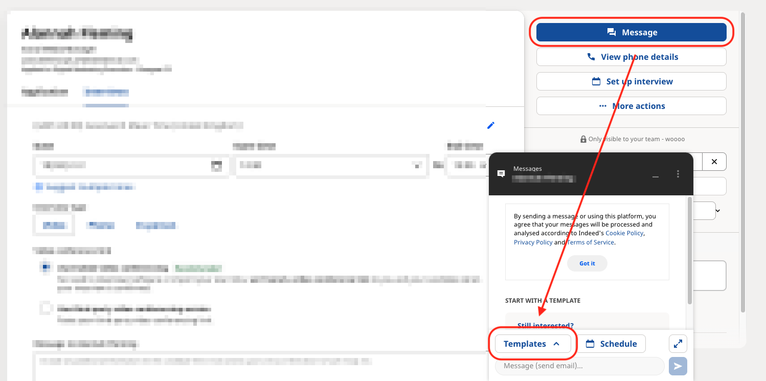 Pro Tip: To send templated messages in bulk to candidates you will need to verify your employer account with Indeed. This process can take up-to 30-days.