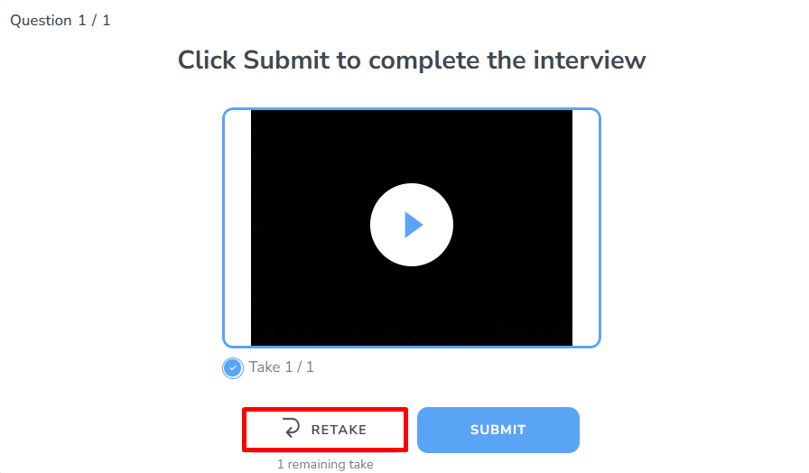 If you do not see this button after recording, that means the organization you are applying for did not delegate any retakes, or you have run out and must select from what you have already recorded.