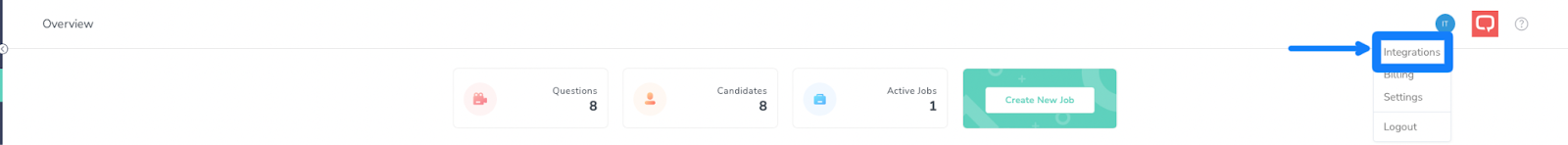 1. In the myInterview platform, navigate to your username at the top right and select Integrations from the drop-down.