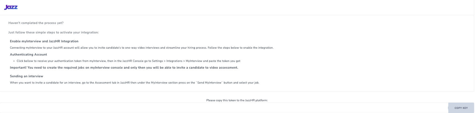 Please reach out to JazzHR support to activate the myInterview connector for the integration at: RSM@jazzhr.com