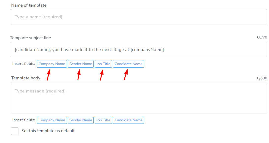 Invite SMS Template: Same as with the Email Invite Template, you can create a fitting Invitation template to send to your candidates on their phone’s via SMS.