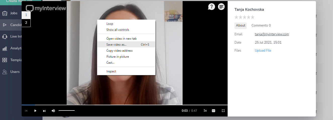 Apart from exporting candidates to CSV file, you can also download individual videos and keep them stored on your computer.
