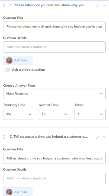 Taira delivers the questions to candidates through a chatbot or video interview.